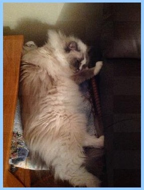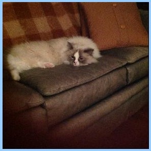 Shamus is really hanging out, he now weighs 12.2 lbs. I love him